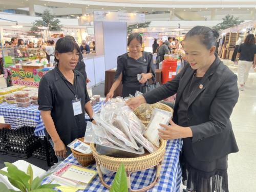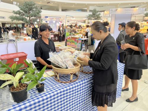พช.อยุธยา เยี่ยมชมพร้อมให้กำลังใจ เครือข่ายโคกหนองนา อำเภอบ้านแพรก จังหวัดพระนครศรีอยุธยา ที่เข้าร่วมจัดแสดงและจำหน่ายผลิตภัณฑ์จากภูมิปัญญาท้องถิ่น ตามโครงการจัดแสดงและประกวดผลงานผลิตภัณฑ์จากภูมิปัญญาท้องถิ่น
