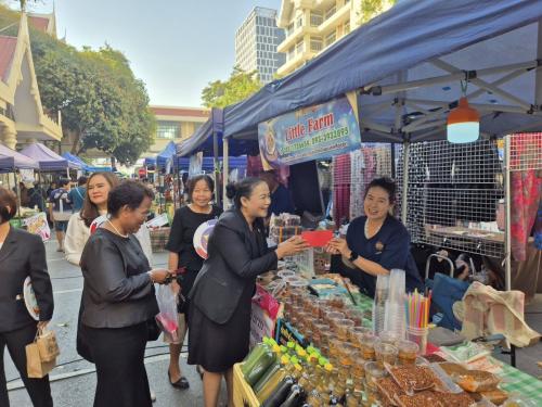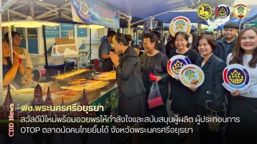 พช.กรุงเก่า ร่วมกับคณะกรรมการตลาดนัดคนไทยยิ้มได้ สวัสดีปีใหม่พร้อมอวยพรให้กำลังใจผู้ผลิต ผู้ประกอบการ OTOP ตลาดนัดคนไทยยิ้มได้ จังหวัดพระนครศรีอยุธยา