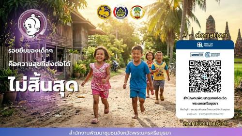สำนักงานพัฒนาชุมชนจังหวัดพระนครศรีอยุธยา ขอเชิญชวนประชาชนทุกท่าน ร่วมเป็นส่วนหนึ่งในการสร้างโอกาสและอนาคตที่ดีให้กับเด็กๆ ในพื้นที่จังหวัดพระนครศรีอยุธยา ผ่าน “กองทุนพัฒนาเด็กชนบท ในพระราชูปถัมภ์ สมเด็จพระเทพรัตนราชสุดาฯ สยามบรมราชกุมารี”